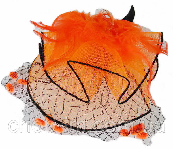 Вуалетка "Вечірка" жовтогаряча з вуаллю (вуаль, капелюшок, головний убір, аксесуар для волосся)